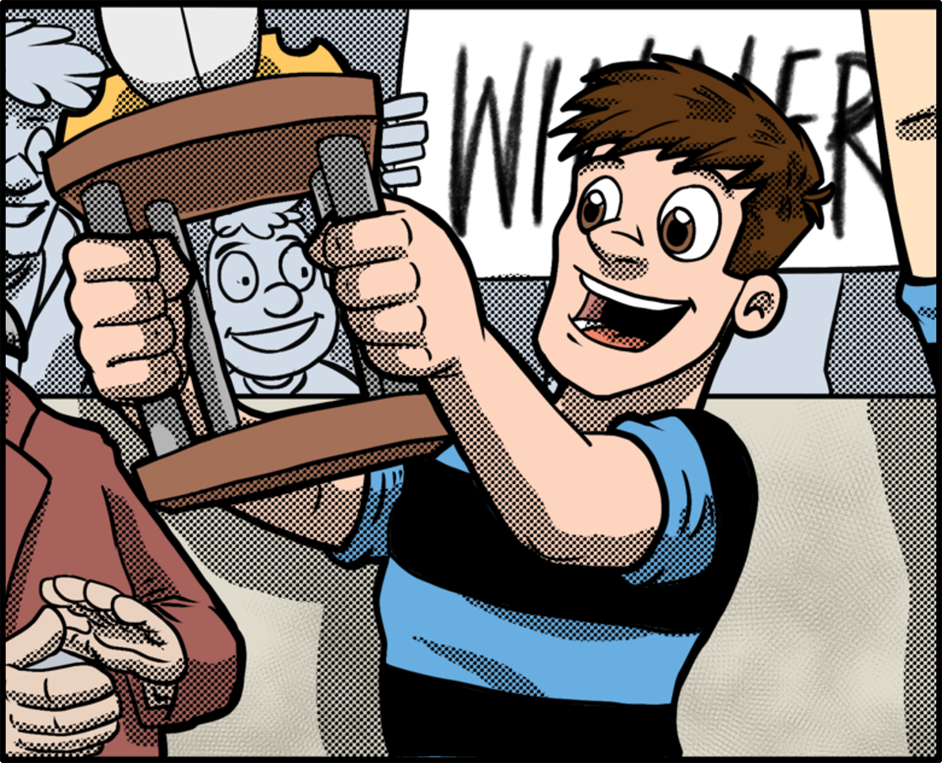 It’s printed. You get a 36-page comic book, paperback or hard cover. Made to the highest quality, to withstand years of reading!